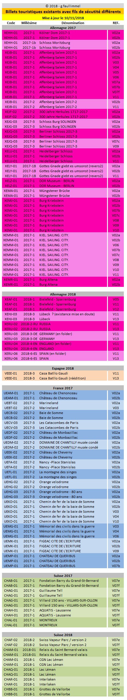 Comme promis à certains, voici la liste de tous les billets Touristique que l'on peut trouver avec au moins 1 fil de sécurité différant.