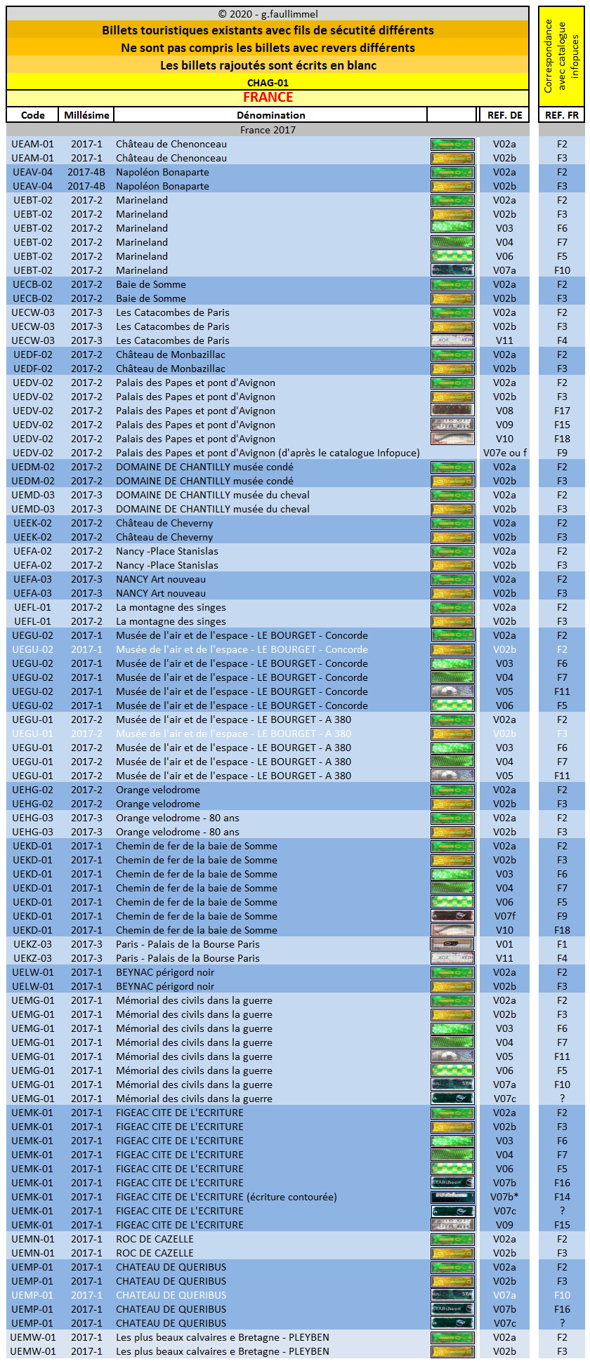 Ce soir je publierais la nouvelle liste de tous les Billets Touristique, que l'on peut trouver avec au moins 1 fil de sécurité différent, mise à jour et cerise su le gâteau, colonne comprenant les visuels des différents fils de sécurité.
