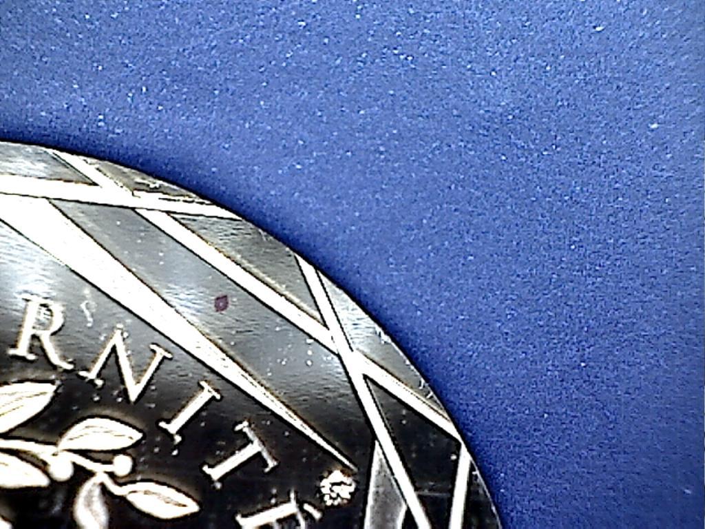 Je ne pense pas que la monnaie de Paris sera d'accord pour vous échanger la pièce vu que ce n'est pas la seule pièce qui a ce défaut de tache. A mon humble pensée ce défaut provient peut-être de la refonte d'anciennes pièces. Donc le métal contient des impuretés, d' où les taches.
