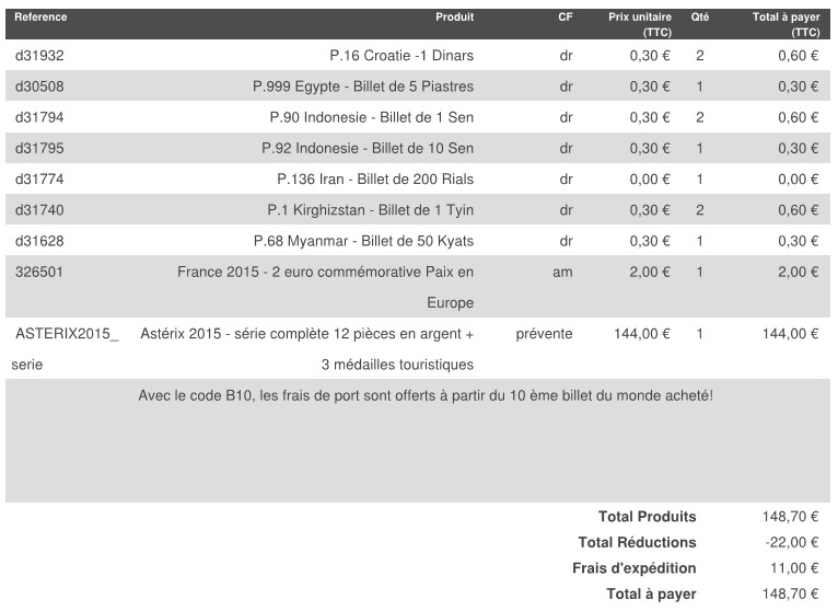 Pour résumé voici le détail de ma commande que j'ai passée