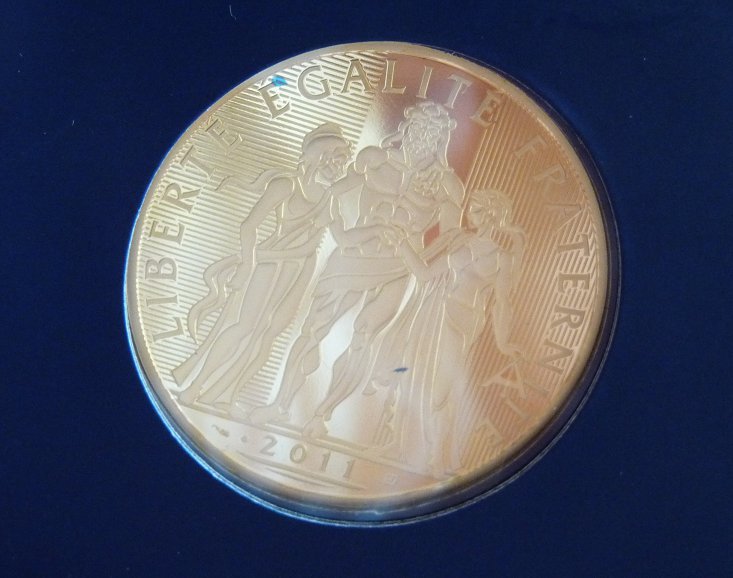 Je viens de m'apercevoir que des traces bleuatres sont apparues à 2 endroits sur ma pièce (sur le é de EGALITE).