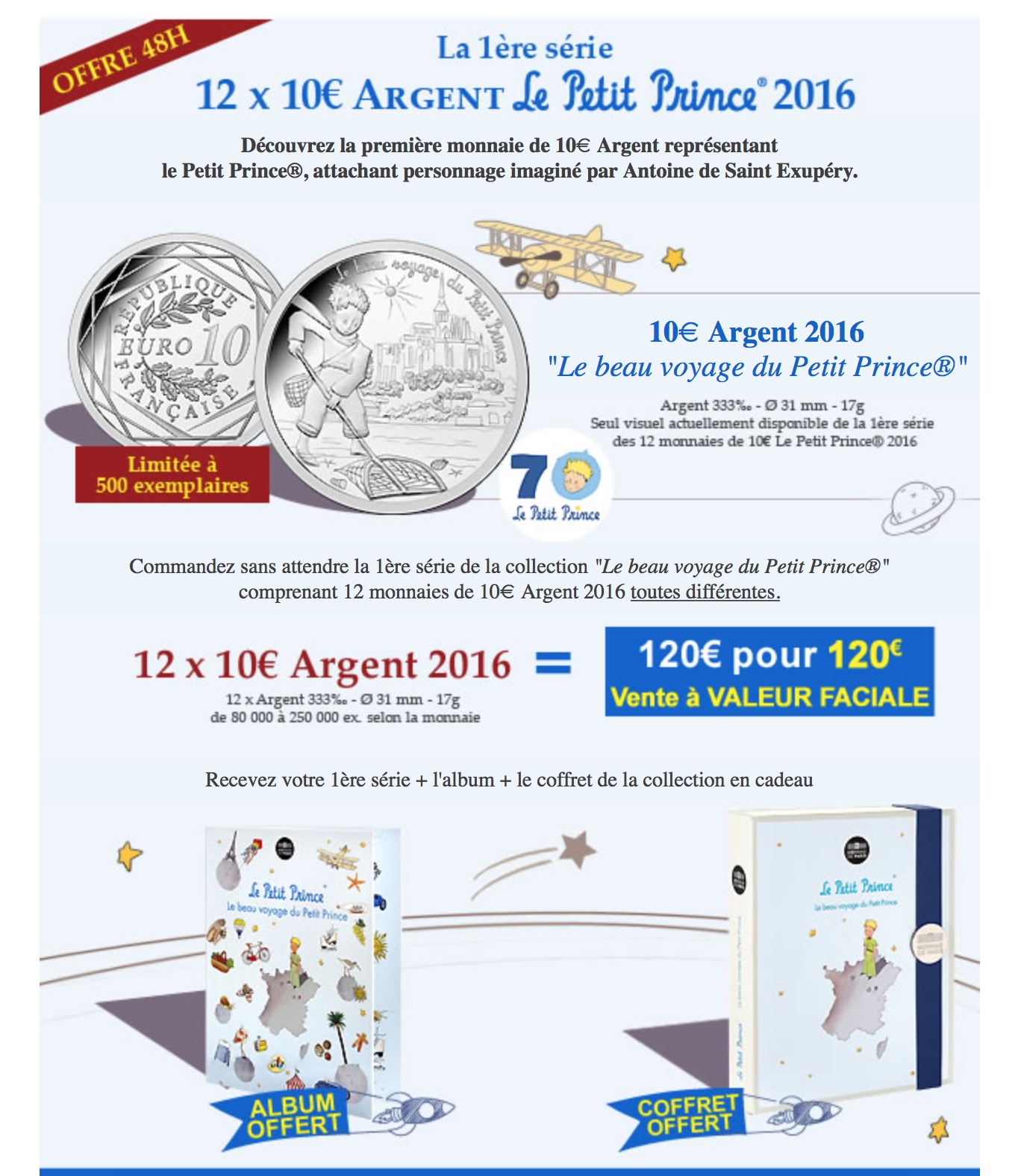 et pour rappel, le tirage, extrait du Programme Monétaire, Monnaie de Paris 2016, présenté le 7 Juillet 2015 :Une nouvelle monnaie « Petit Prince »